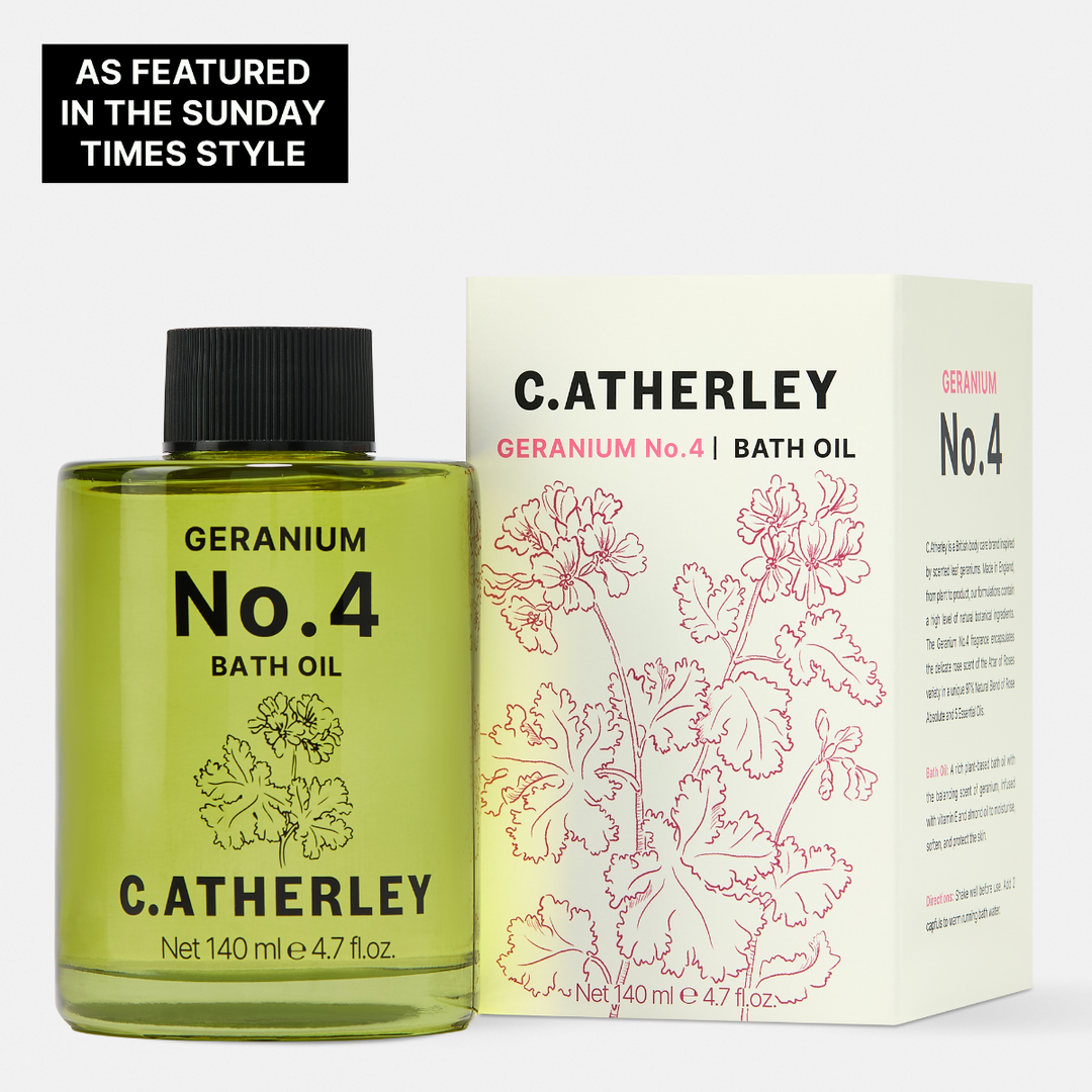 “The C.Atherley range of geranium products is unbelievably delicious, from the bath oils to the lotions to the hand creams.”