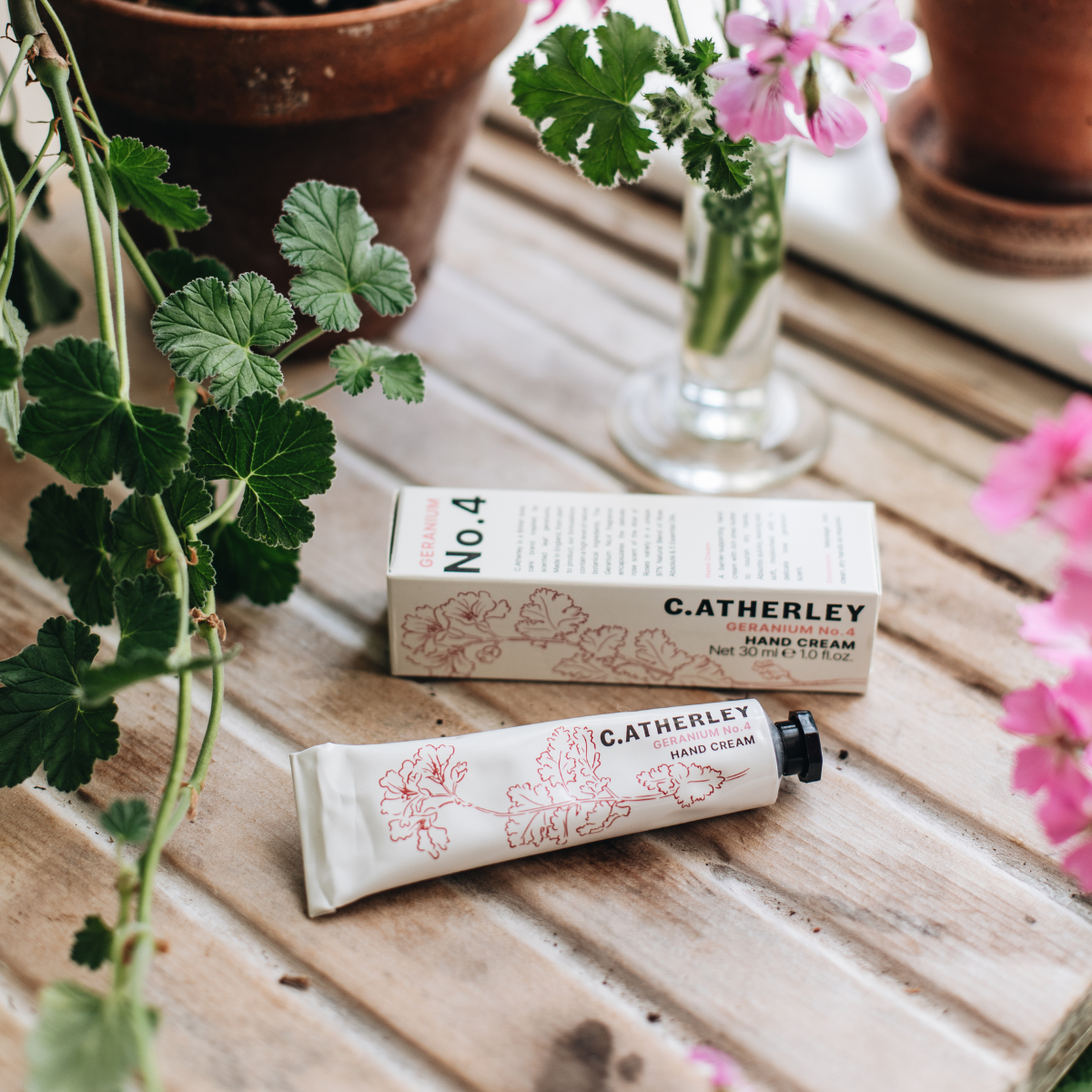C.Atherley is a British body care brand inspired by scented leaf geraniums. Made in England, from plant to product, our formulations contain a high level of natural botanical ingredients. The Geranium No.4 fragrance encapsulates the delicate rose scent of the Attar of Roses variety in a unique 97% Natural Blend of Rose Absolute & 5 Essential Oils.