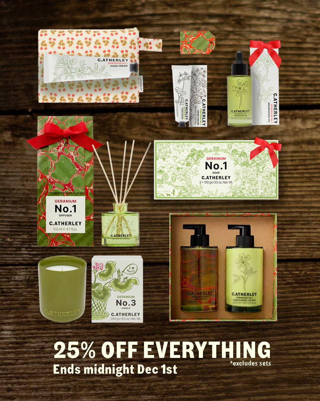 Enjoy 25% off across all C.Atherley collections online and in our store, from original Geranium No.1 favourites to our new Zonal and Marble edits.