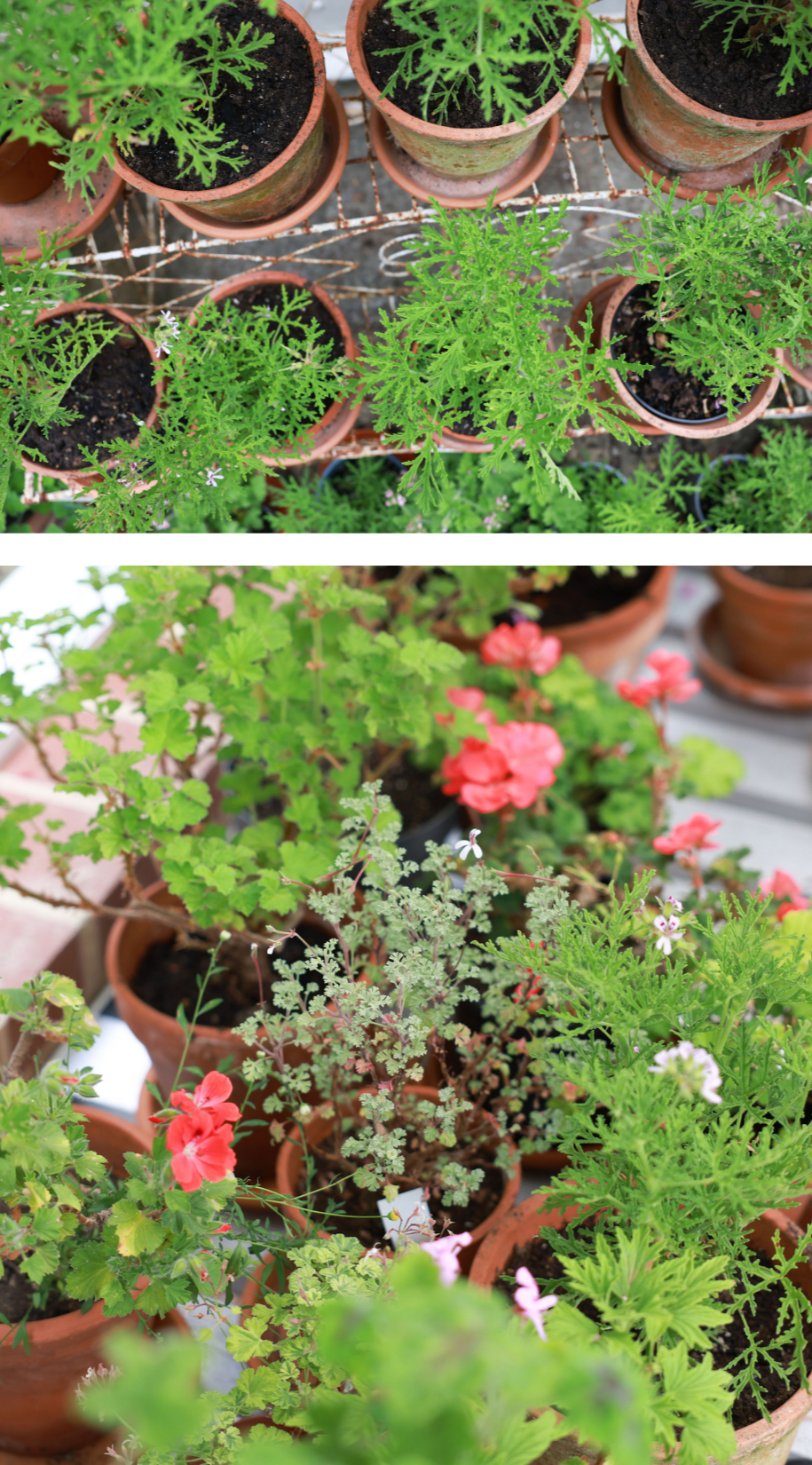 Pelargoniums are derived from the same plant family “Geraniaceae” and are often grown in pots. Some varieties have scented leaves and delicate flowers, while others produce bright colourful flowers. They need protection in the winter and are not hardy. We think pelargoniums answer to both names (colloquially speaking), though plant experts may factually disagree.
