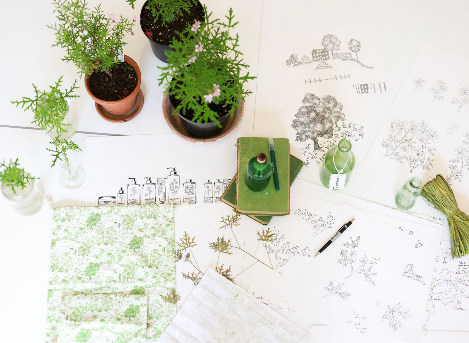 The packaging is produced by Cath’s design studio, with illustrations drawn from life to reflect each plant fragrance within. Inspired by old green apothecary vials, our glass bottles are recyclable, as is all our paper packaging. We strive to keep sustainability at the core of what we do.